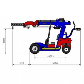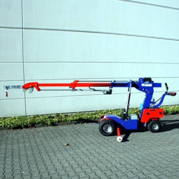 - Einen elektrischen Radantrieb für sanftes, zweistufiges Fahren des Kran-Bob 600 mit schwerer Last (vorwärts/rückwärts).