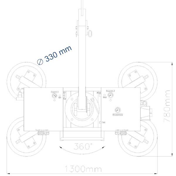 - Schwenken 90° manuell, stufenlos, mit Senkzylinder
