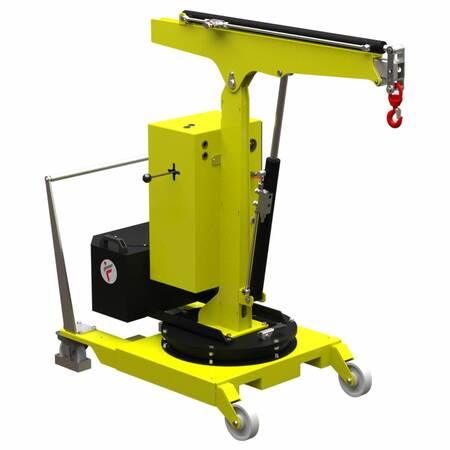 können Lasten bis 500 kg gehoben und bewegt werden. Der Kranausleger kann um 360° geschwenkt werden und durch die Schwerlast- und Leichtlauflenkräder mit Stoßsicherungen und Feststellbremsen leicht zu lenken.