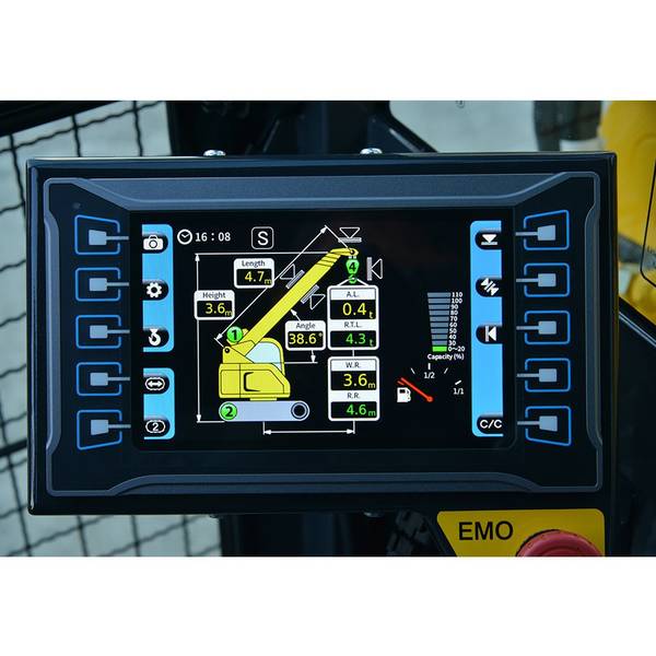 Der CC1485 ist ein innovatives Kraftpaket mit vielen marktführenden Merkmalen, dazu gehören unter anderem eine maximale Tragkraft von 6.000 kg, eine Auslegerlänge von 16,3 m (22 m mit Kranspitze), eine Rückfahrkamera sowie ein neues, größeres 7 Zoll Farbdisplay.