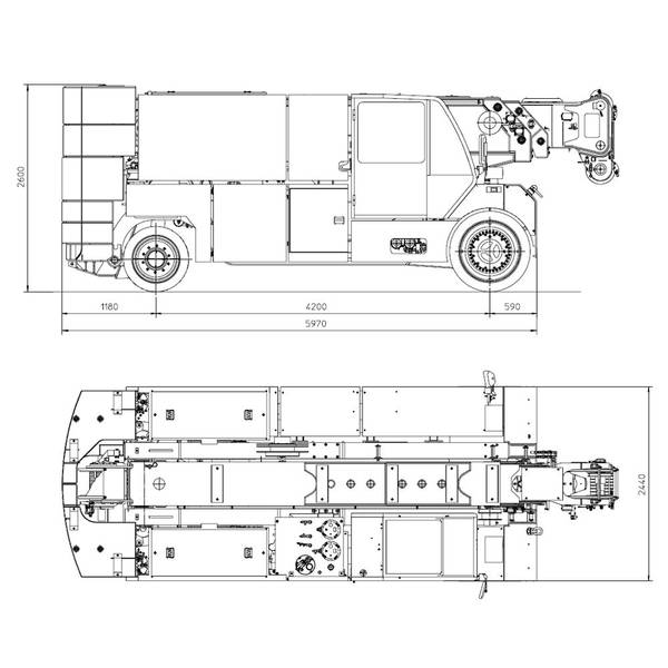 Betriebsspannung: | Betriebsspannung 96 V CC über Blei-Akku 1395 Ah (Ausreichend für ca. 8 Arbeitsstunden ), bestehend aus 48 Elementen. Beleuchtungsanlage mit 24 V CC und Wandler 96/24 V. Separates Batterieladegerät. |