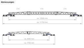 | Dachtraverse: | Länge 6 m: 2-teilig (2 x 3 m) Länge 10 m: 3-teilig (2 x 3 m, 1 x 4 m) | |