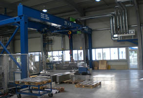 Der Portalkran kann fest oder verfahrbar sein. Weiter gibt es die Möglichkeit den Kran zu Automatisieren.