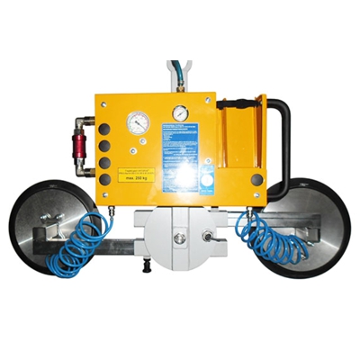 Das vakuumbasierte Lastaufnahmemittel ERGO-Sprint 250 ist für die vertikale Handhabung von Glasscheiben und Fensterelementen bis zu einem Gewicht von maximal 250 kg innerhalb geschlossener Räume konzipiert. Es ist mit einer Lastaufnahmeöse zum Einhängen in ein vorhandenes (kundenseitiges) Hebezeug ausgestattet. Der Saugrahmen kann manuell um 90° gedreht werden. Die ergonomisch angeordneten Bedien- und Anzeigeelementegestatten ein komfortables Positionieren und Bewegen der Last. Die zentrale, nach dem Venturi-Prinzip, arbeitende Vakuumversorgung (Ejektor) gewährleistet ein hohes Maß an Sicherheit. Im Falle eines plötzlichen Druckluftabfalls wird durch ein Kontrollmanometer im Druckluft, sowie im Vakuumbereich und durch ein akustisches Signal gewarnt. Zudem bleibt das Vakuum in jedem Sauger mindestens 5 Minuten erhalten. Somit ist das sichere Absetzen der Last jederzeitgewährleistet.
